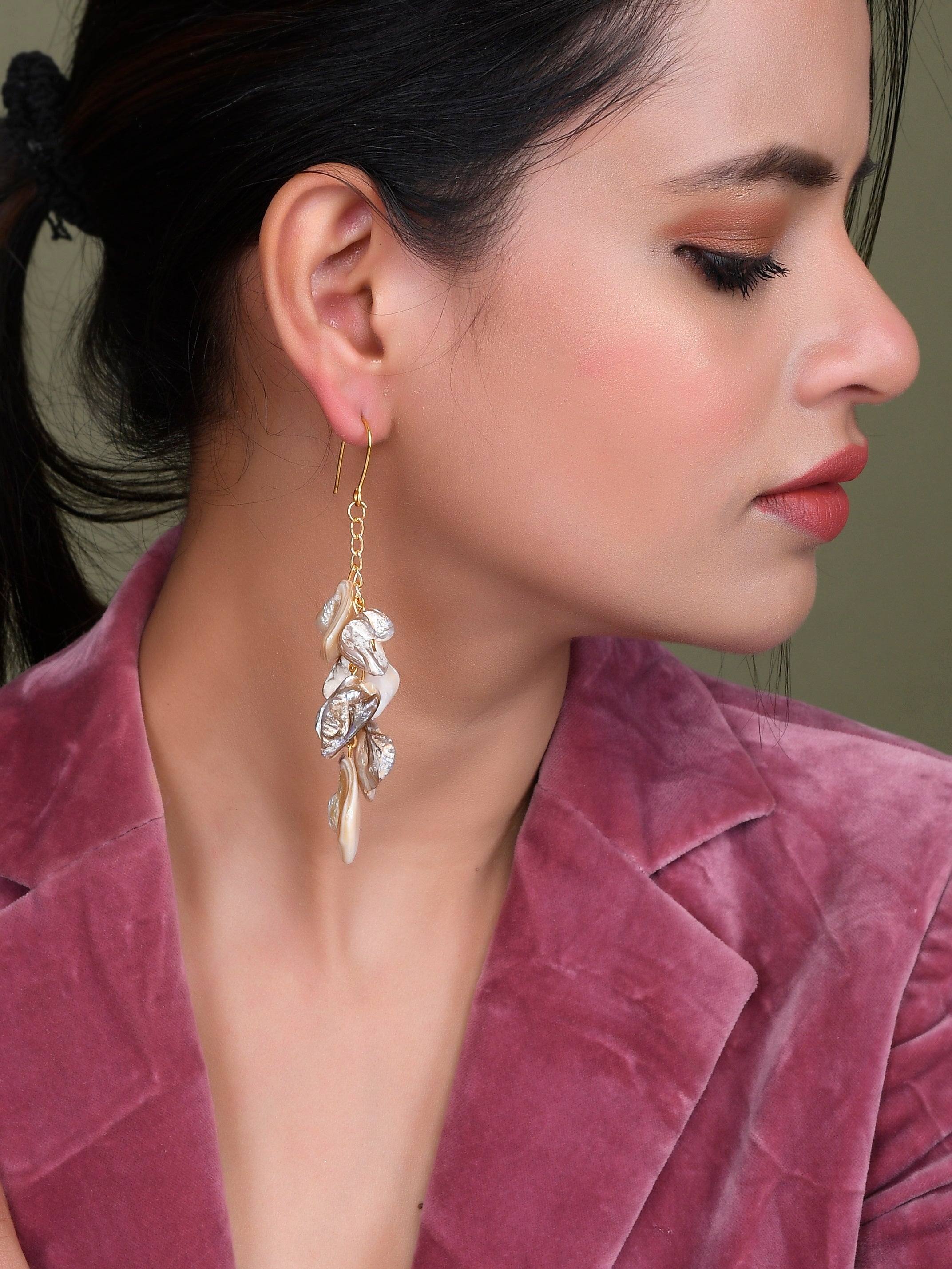 Silver Plated & White Teardrop Shaped Drop Earrings