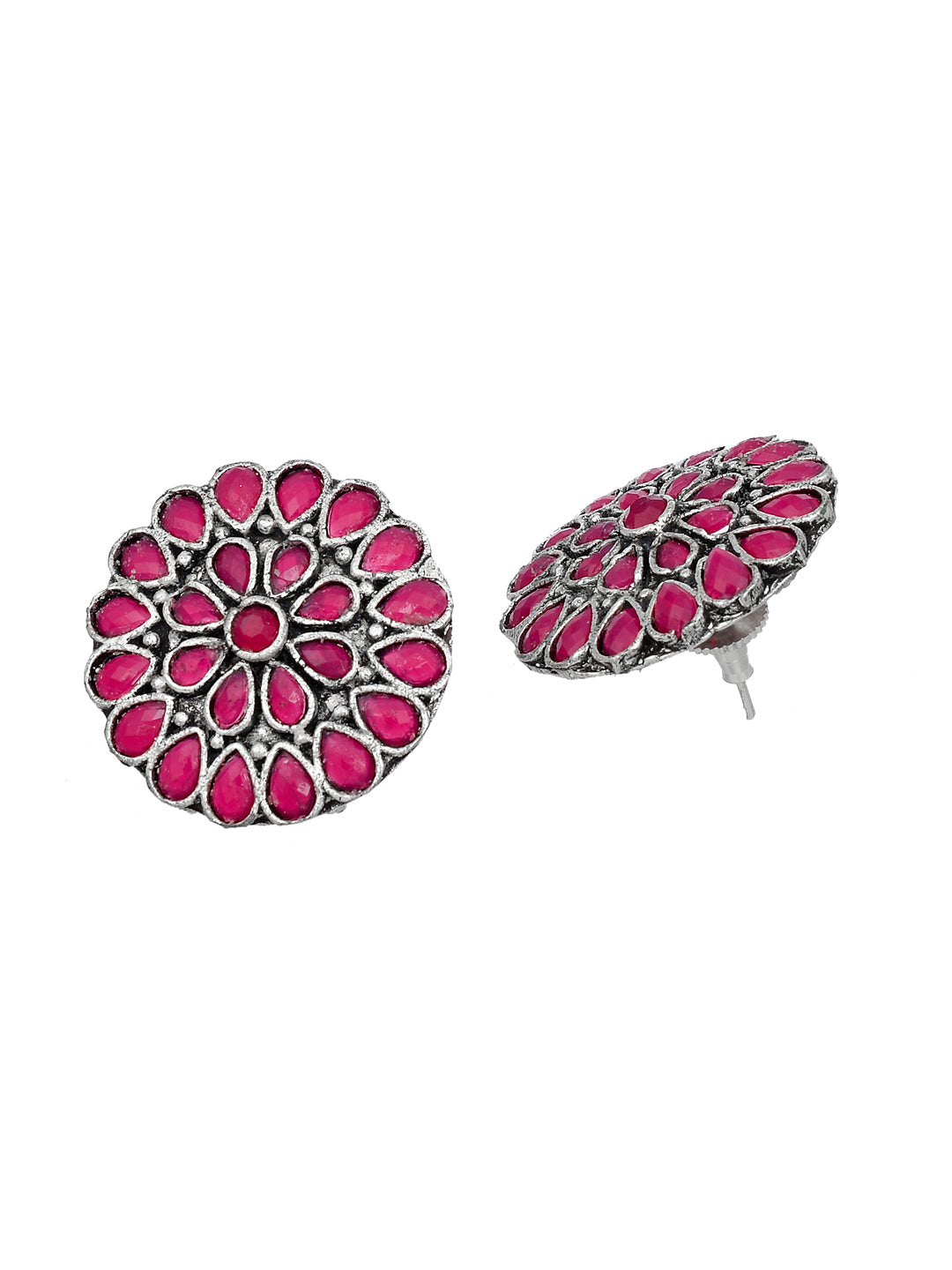Classic Pink Oxidized Stud Earring For Women