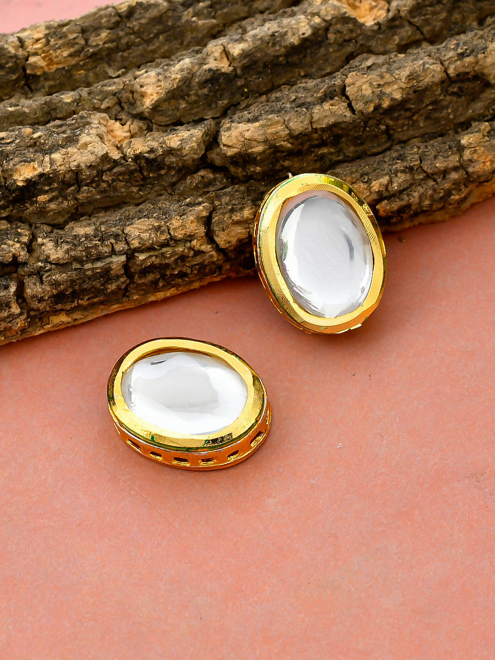 Shop these beautiful Contemporary Gold Plated Kundan Stud Earrings bring instant glamour to any look. Crafted from high-quality gold plated copper with sparkling kundan stones, these earrings bring elegance and a modern touch to any ensemble.