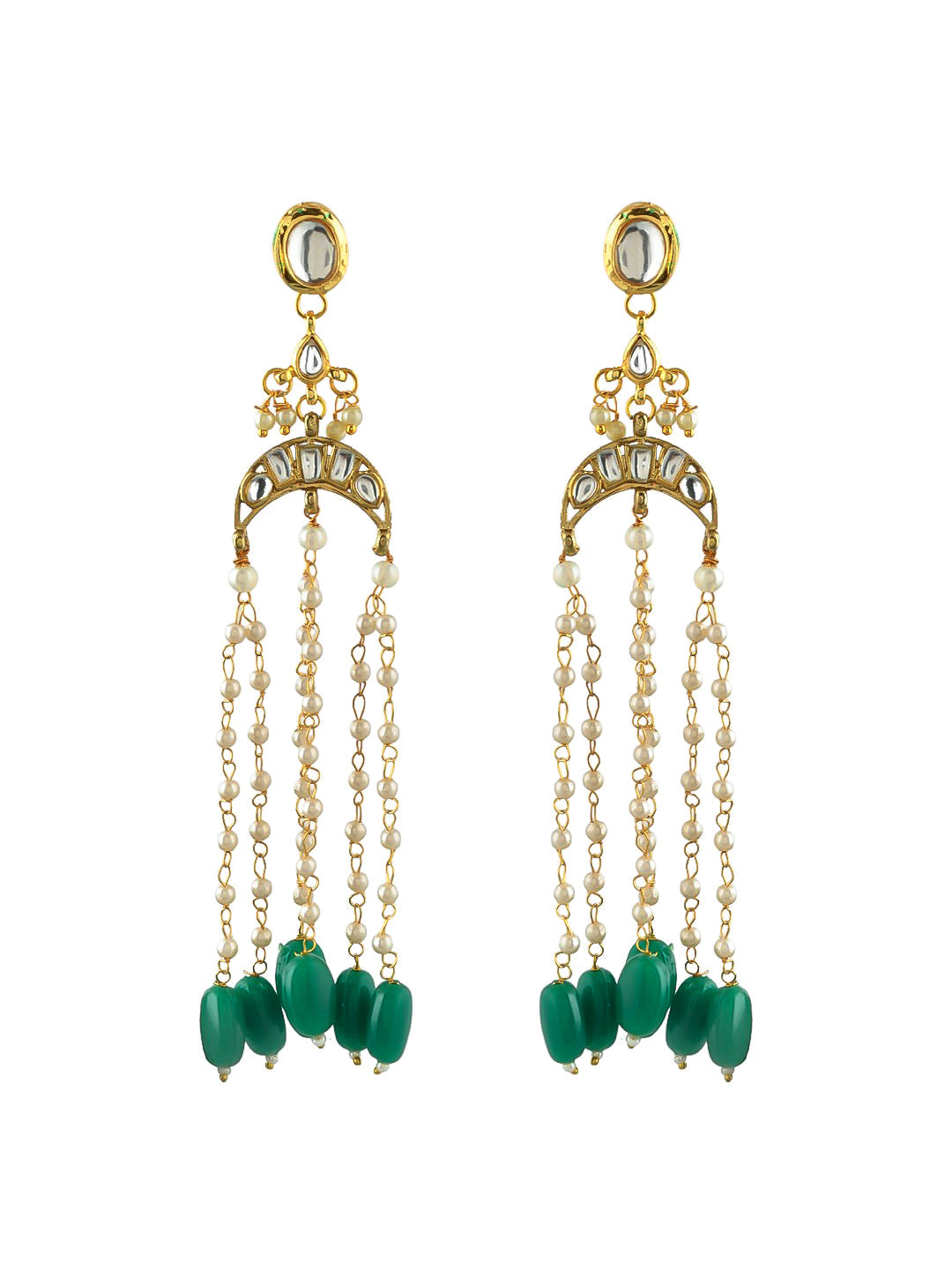 Gold Chandelier Earrings with Green Gemstone Accents. Step into a world of elegance with our stunning gold chandelier earrings, intricately designed and adorned with sparkling crystals and deep green gemstones. Perfect for evening wear, these earrings promise to make a statement at any event.
