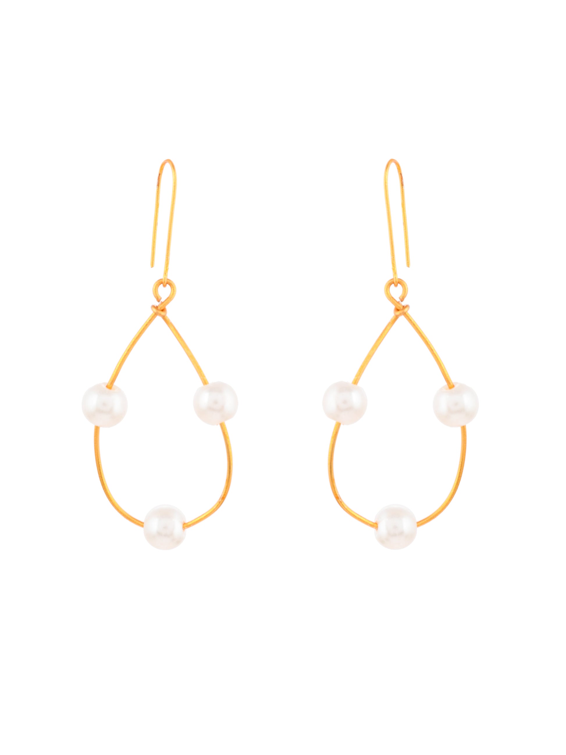 Shop these Beautiful Gold Pearl Dangler Earrings These stunning dangle earrings are crafted with Brass and genuine pearls to create a timelessly elegant look. With its elegant design, these earrings can add a touch of sophistication to any look.