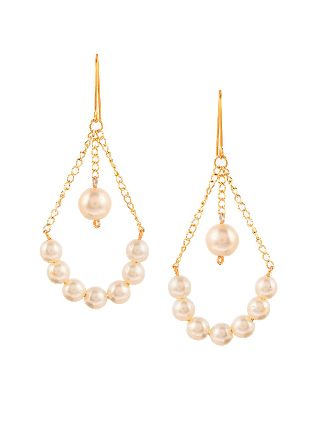 Shop these Beautiful Gold Plated Chain Pearl Earrings. Go For Statement Earrings That Can Be Seen From Across The Room Like Tassels. Go For Danglers, Jhumkis,Chandbalis. For The Rest Of The Outfit, Keep It Simple.