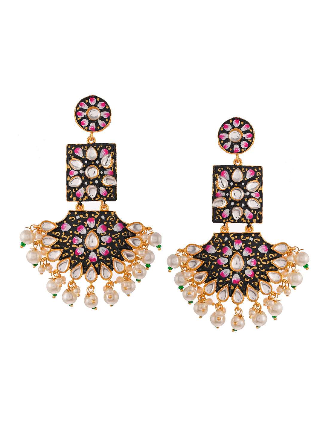 Shop These Gold Plated Handpainted Ethnic Kundan Dangle Earrings are exquisitely designed and crafted with beautiful hand painted details. Gold Plated Handpainted Ethnic Kundan Dangle Earrings. This Hand Painted Kundan Earrings is secured with Post-Back Closure.