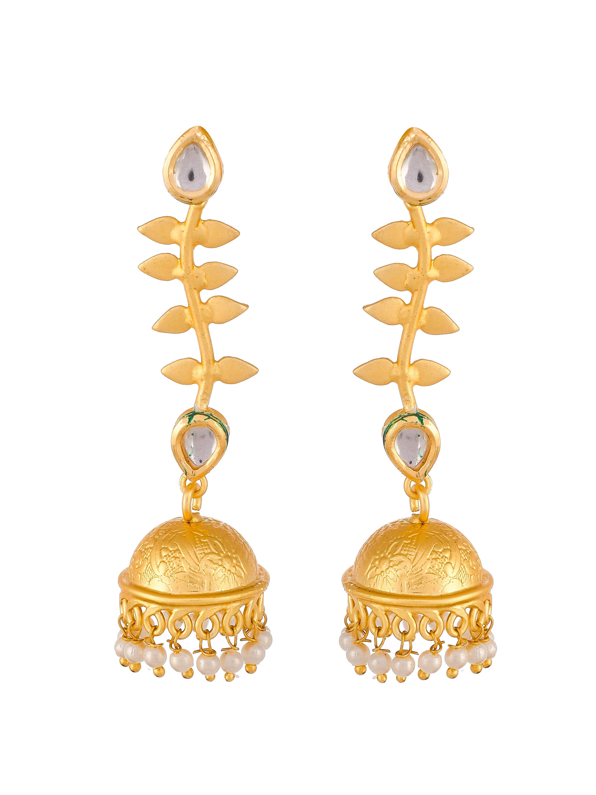 Gold-Plated Kundan Studded Leaf Design Jhumka Earrings – Silvermerc Designs