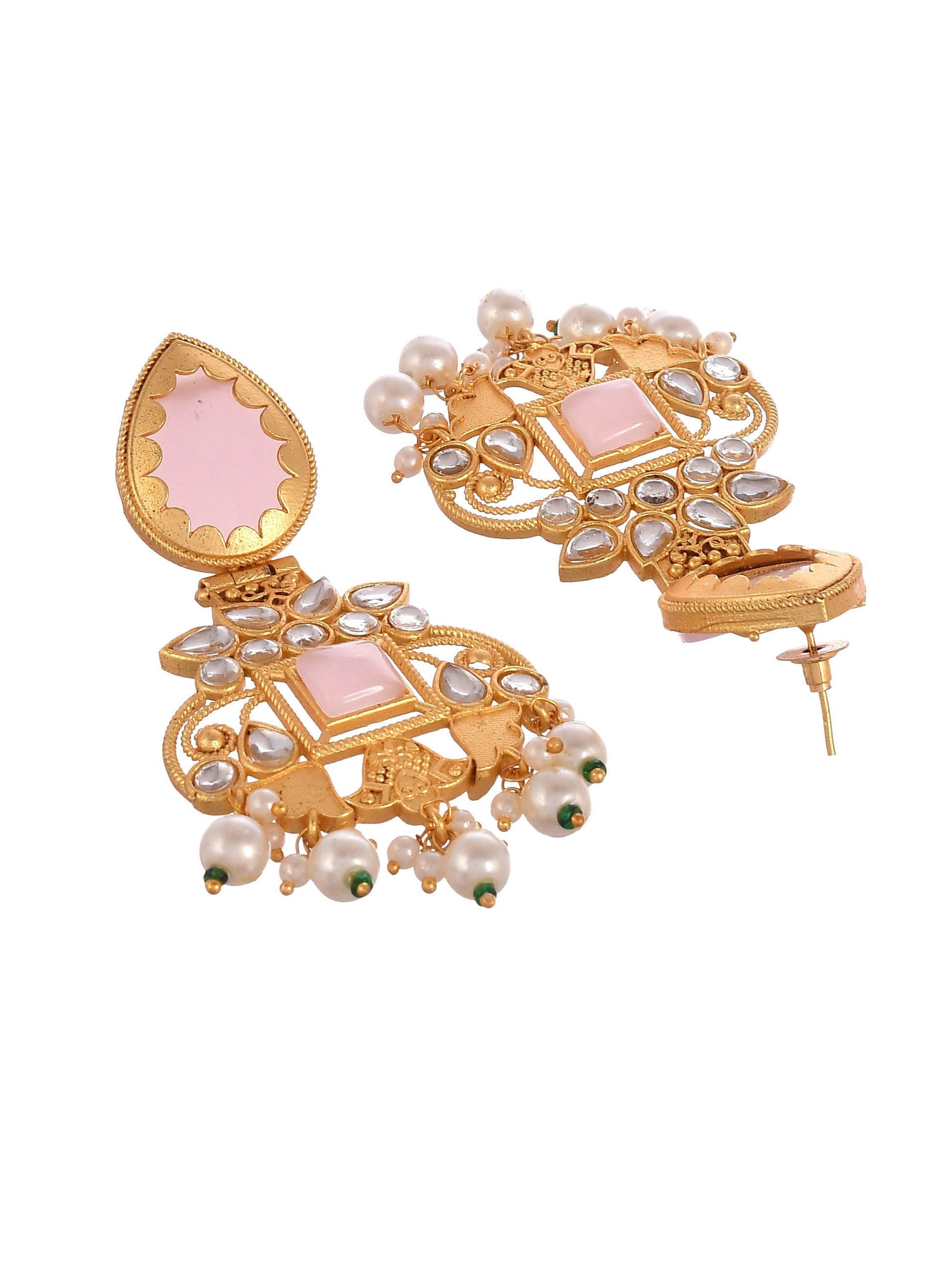 Gold Toned Pink Beaded Kundan Studded Ethnic Earrings
