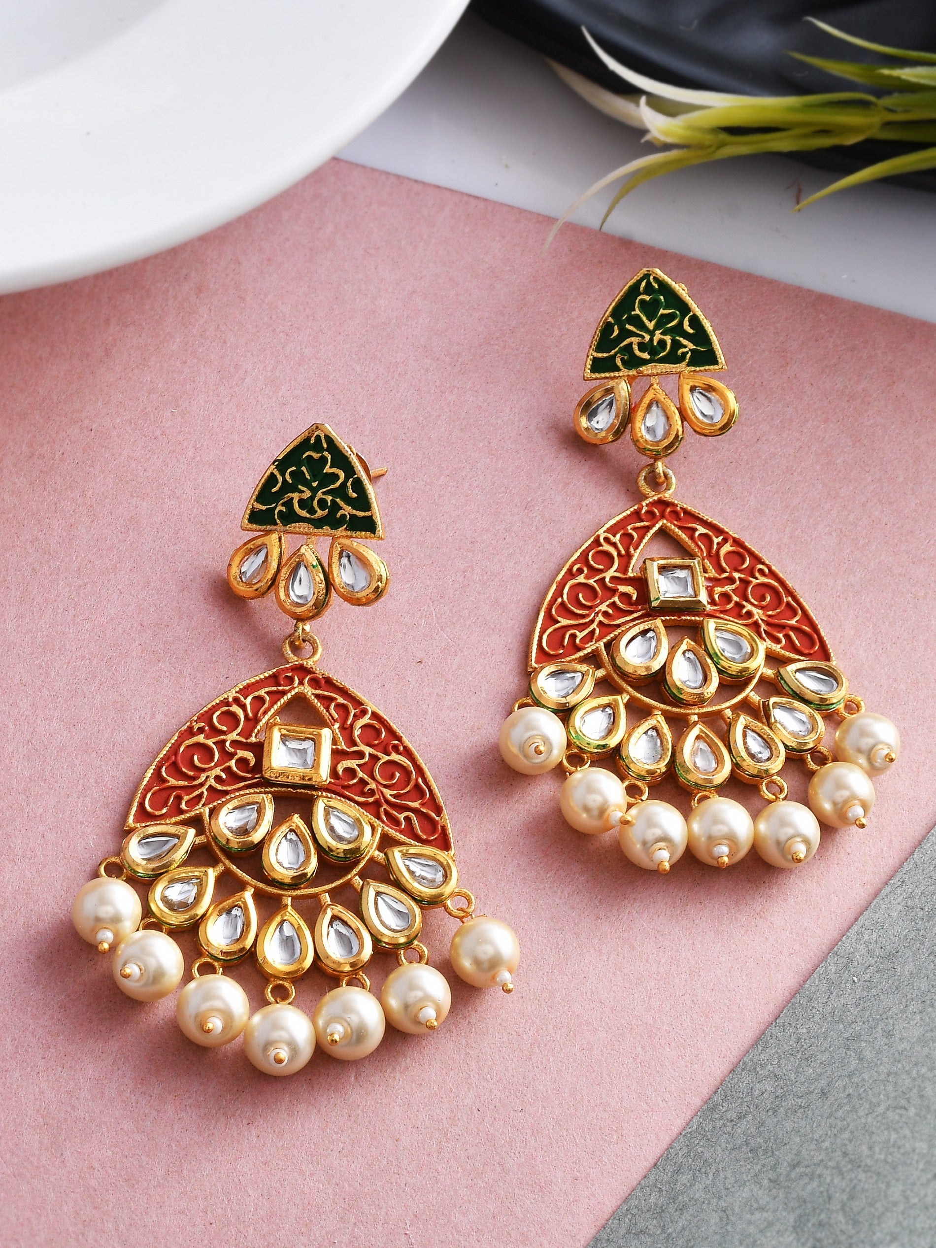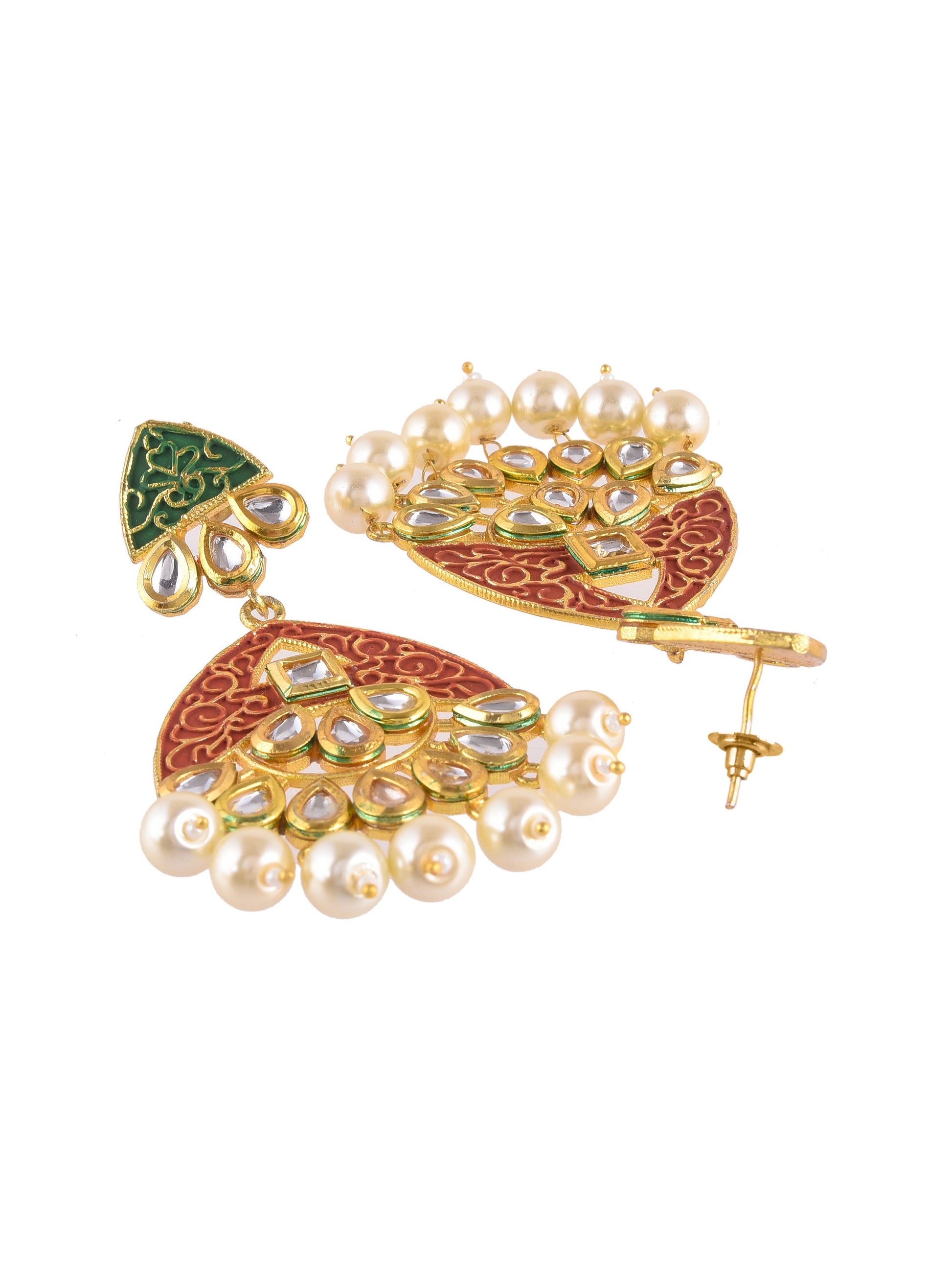 Traditional Kundan minakari Pearl chandbali earring For women