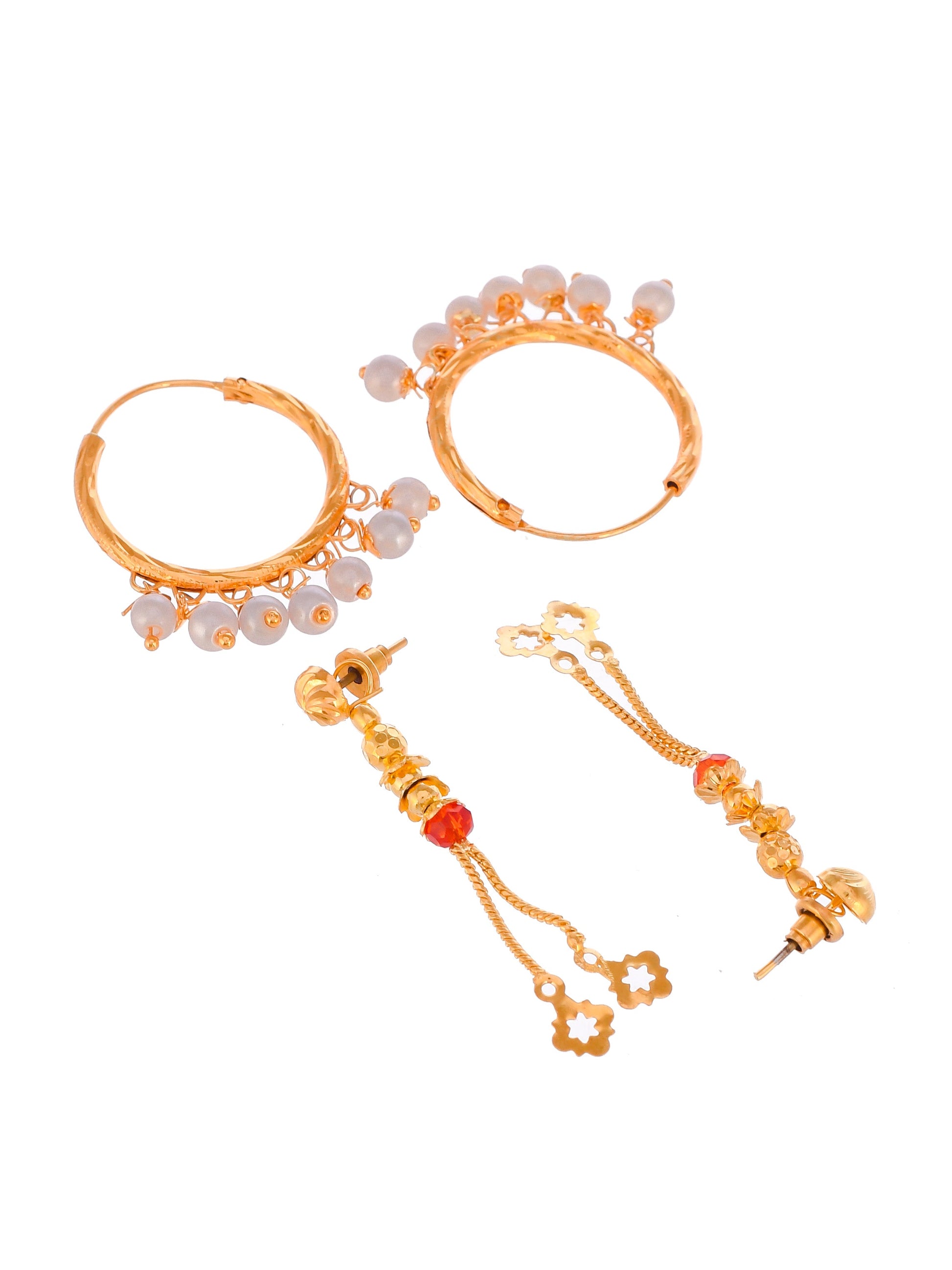 Set of 2 Gold Plated Contemporary Hoop and Dangle Earrings