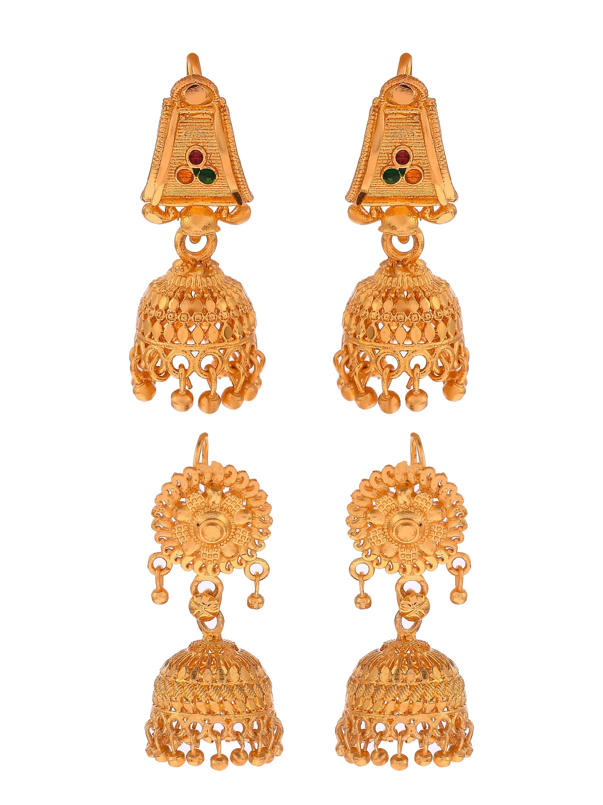 Set of 2 Gold Plated Handcrafted Meenakari Ethnic Temple Jhumka Earrings – Traditional Elegance Redefined
