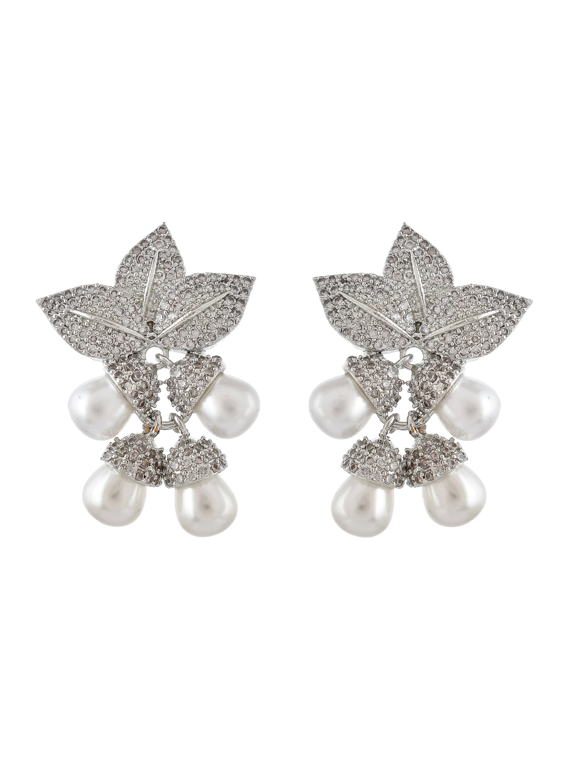 Silver American Diamond Mini Leaf Stud Earrings for Women. They give glamorous look to evening parties. And an ethnic look on sarees and suits.