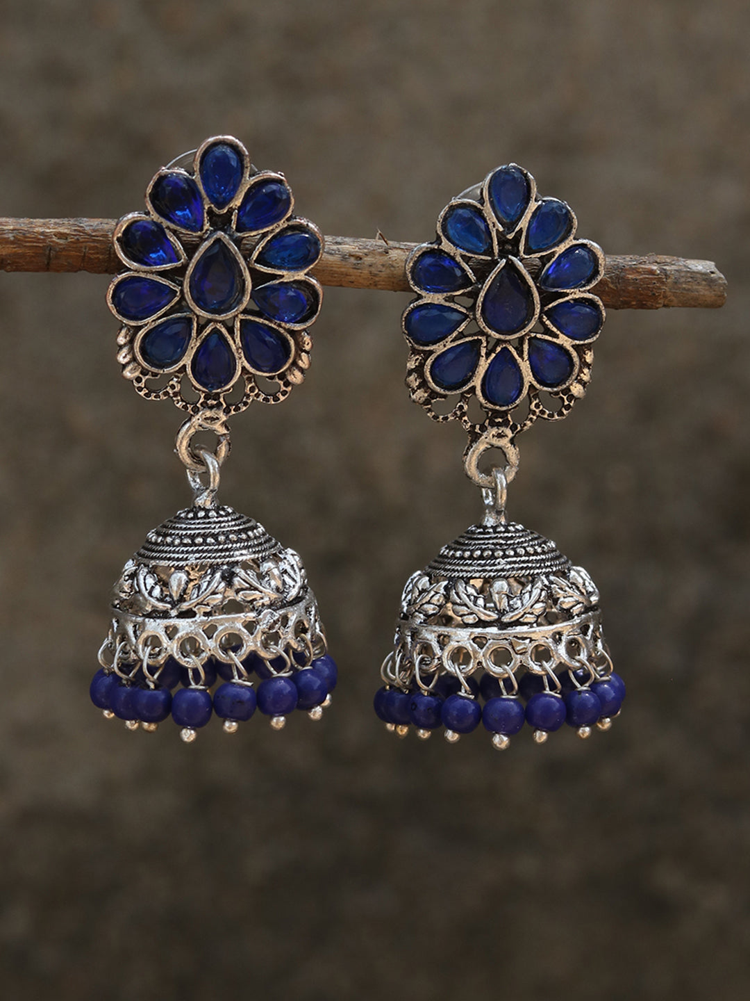 Silver Plated & Blue Jhumkas Earrings