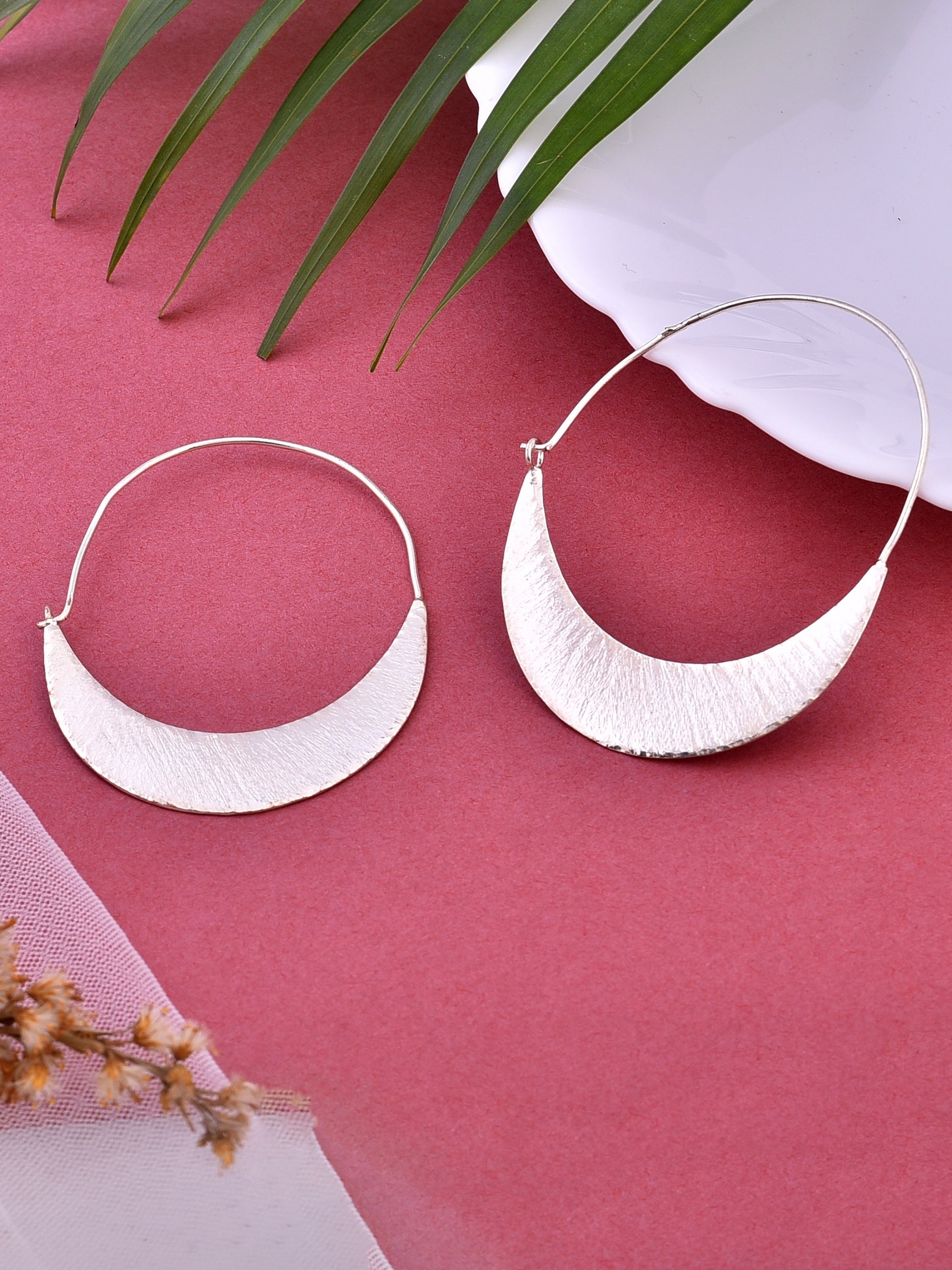 Shop these Silver-plated circular hoop earrings are a popular type of jewelry. They are typically made of a base metal, such as brass or copper, which is then coated with a thin layer of silver through a process called electroplating.