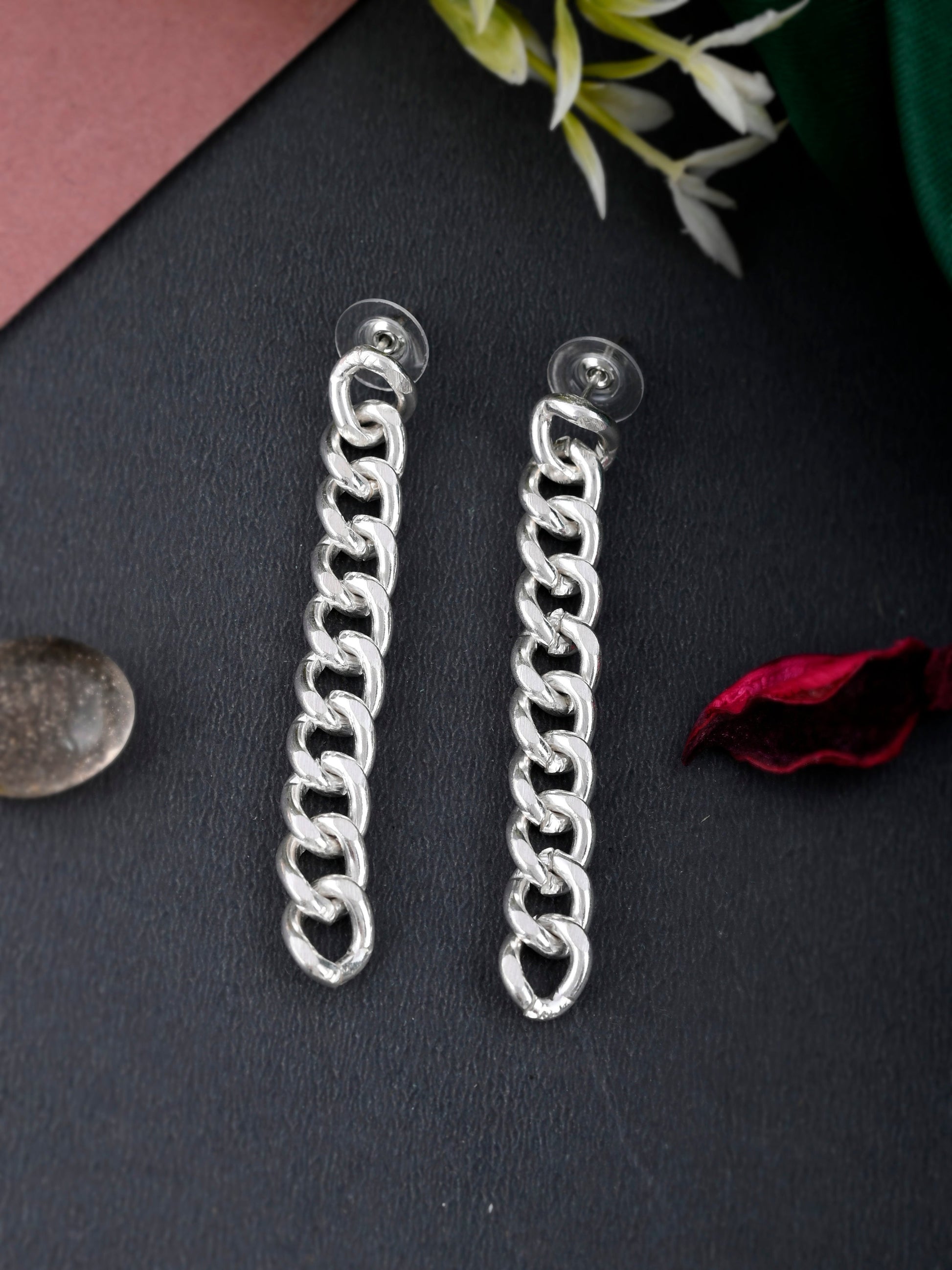 Shop These Silver Plated Long Chain Drop Earrings are a great addition to any jewelry collection. Crafted with a combination of silver plating and long chains, these earrings are sure to make a statement. Their classic look and feel make them a timeless piece that you can enjoy for years to come.