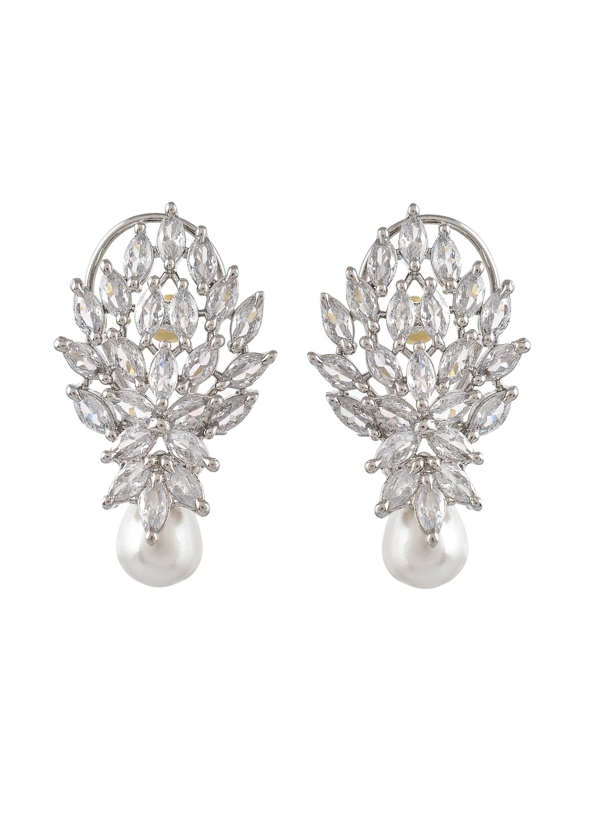 Silver-Toned Contemporary Amercian Diamond Stud Earrings