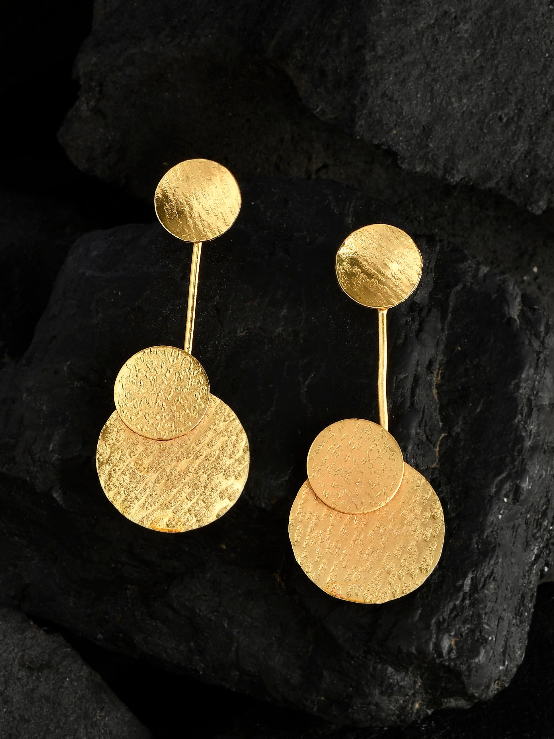 Upgrade your daily look with our Triple Disc Circular Long Earring. These elegant earrings are designed to add a touch of sophistication to any outfit. With its sleek circular design and versatile style, these earrings are the perfect addition to your latest collection. Elevate your fashion game effortlessly.